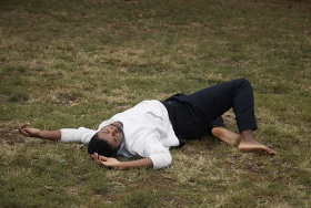 photo archives of a performance at Socrates Sculpture Park in response to a father's voice, the surrounding witnesses, and the public sculpture, Four Hands, by...